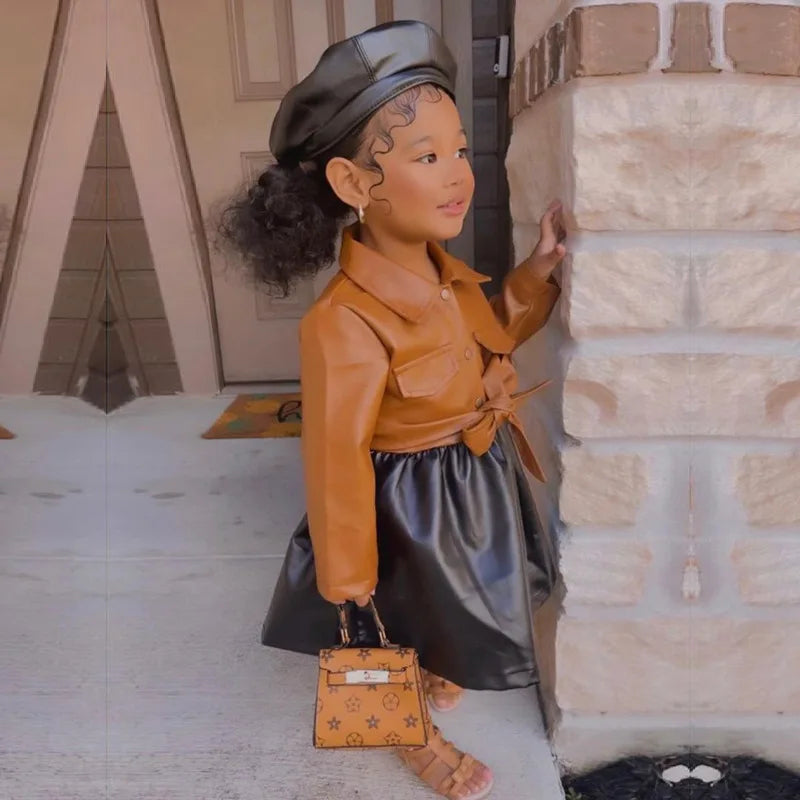 Tell the boardroom to step aside—Mini CEO is clockin’ in! 💼✨ This two-piece look features a statement sash top and a faux leather skirt that screams boss baby energy. Perfect for photo ops, birthday brunches, or anywhere your mini mogul needs to make power moves. Add a little purse and she's booked, busy, and unbothered!