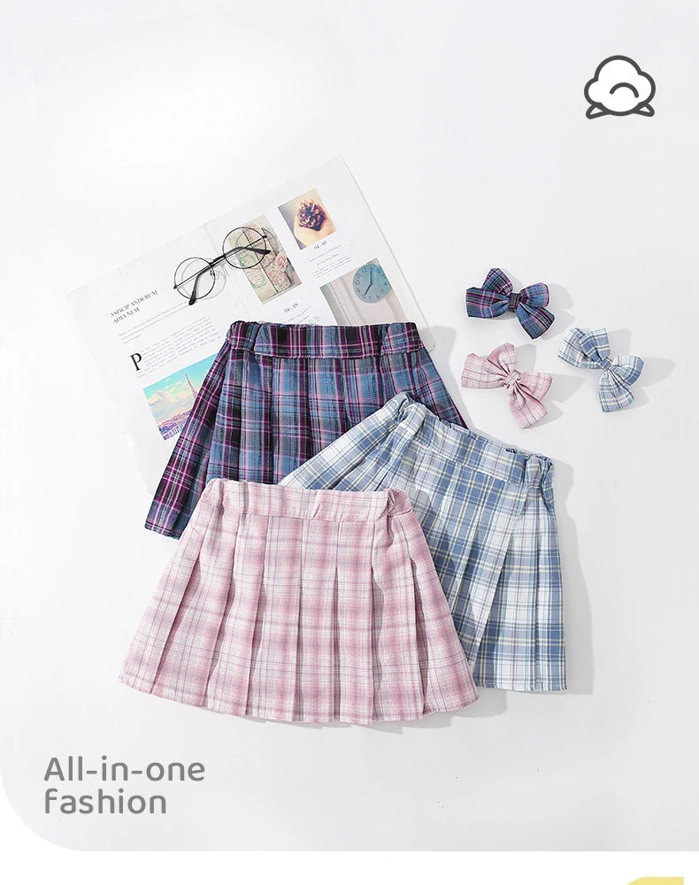 Give preppy perfection with a lil twist! The Plaid About You Skirt Set brings all the schoolgirl vibes in soft pleated plaid with a matching hair bow to top it off. Whether she’s headed to class, brunch with mama, or just being the stylish diva she is, this set serves cute and classy with main character energy every time. 💅🏾📚🎀