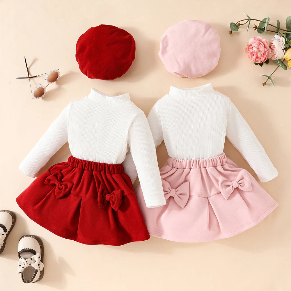 She’s giving timeless, classic, and Christmas card ready 🎀❄️ The Lil Miss Holiday set features a crisp white long-sleeve top with an oversized red bow and a flared matching skirt. Perfect for holiday parties, school photos, or when she’s just feelin’ a lil’ extra fancy. Comes with the cutest matching beret to top it all off 🎄❤️