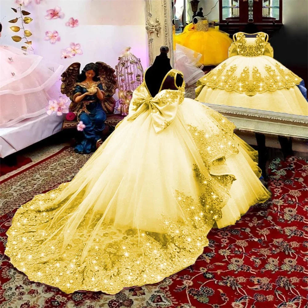 A gown made for girls who were born to reign. With a sweeping train and intricate lacework, this elegant number brings all the royal drama. Perfect for pageants, portraits, or any moment she deserves to feel like true royalty. This ain’t just a dress—it’s a grand entrance. 💫