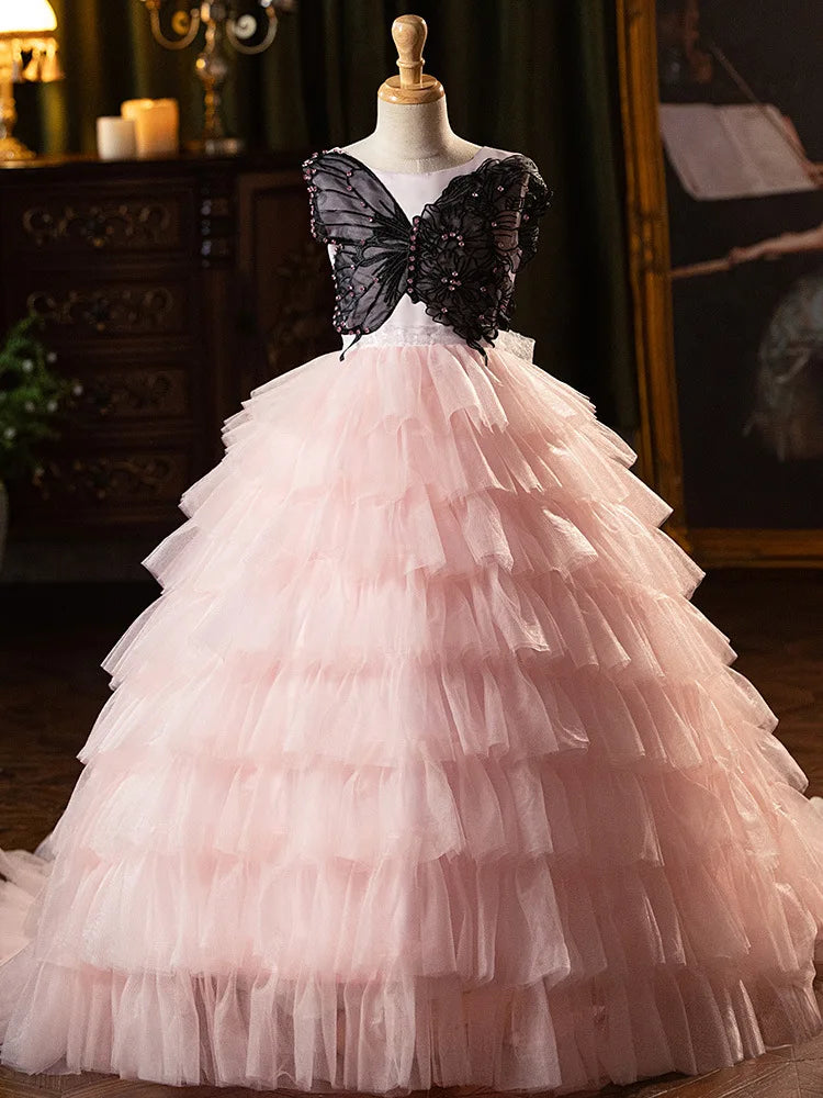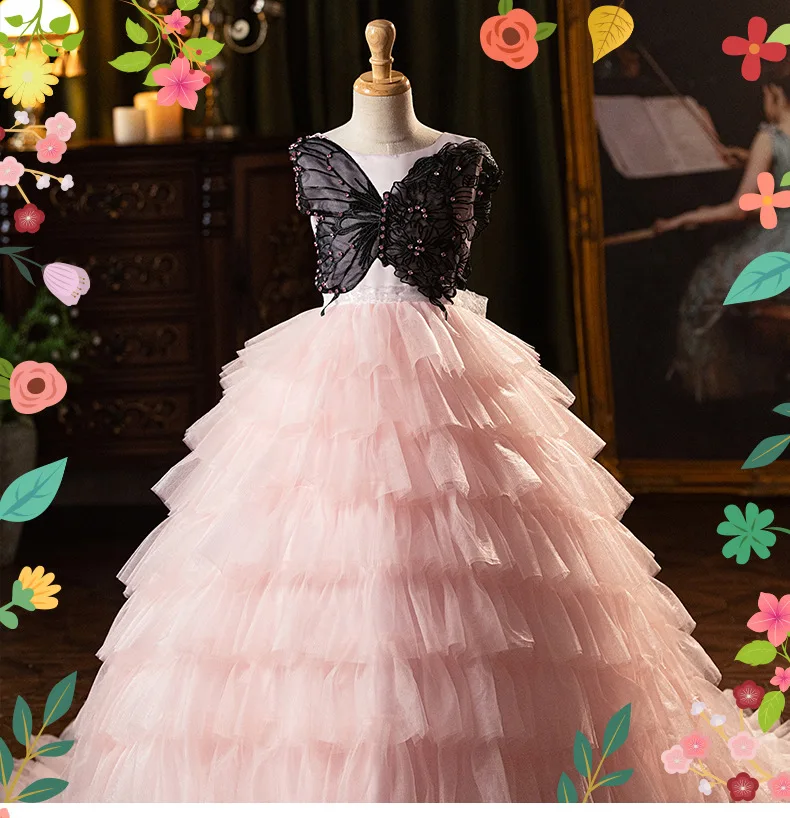 Let her take center stage in this show-stopping ball gown! With a bold black bodice and cascading layers of pastel tulle, this dress is made for moments that matter—whether it’s a pageant, gala, or just slaying in the living room.