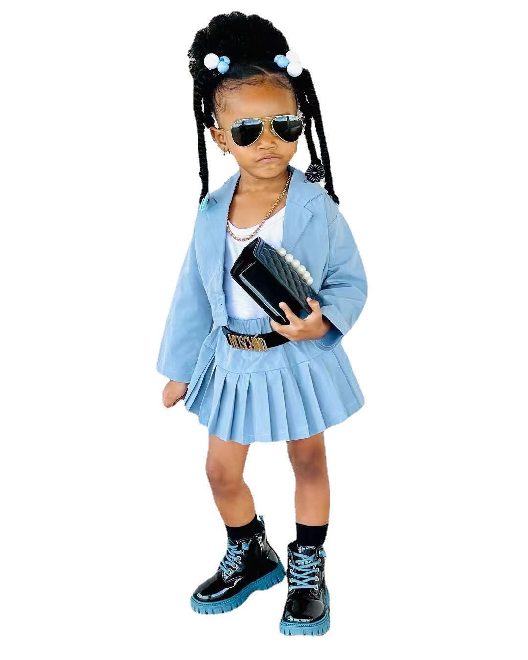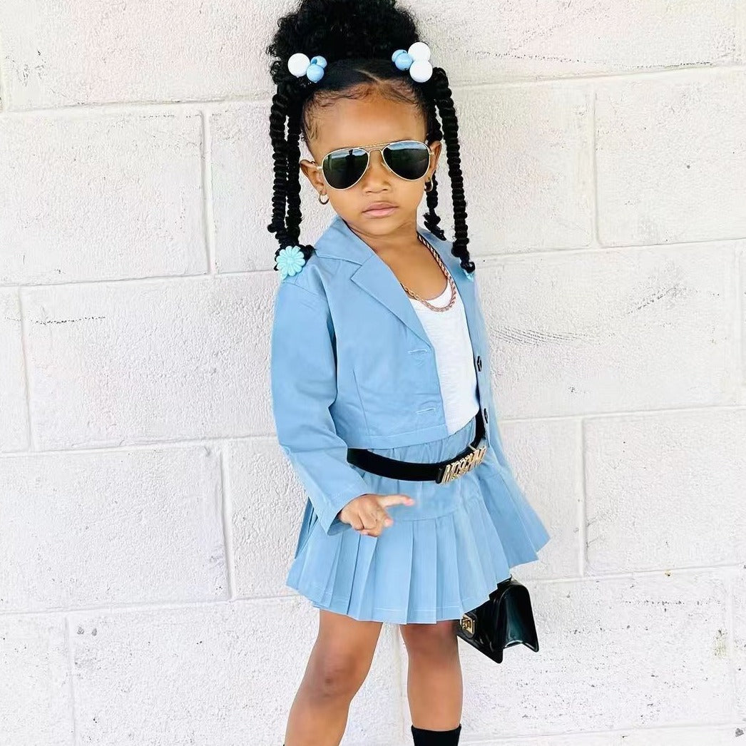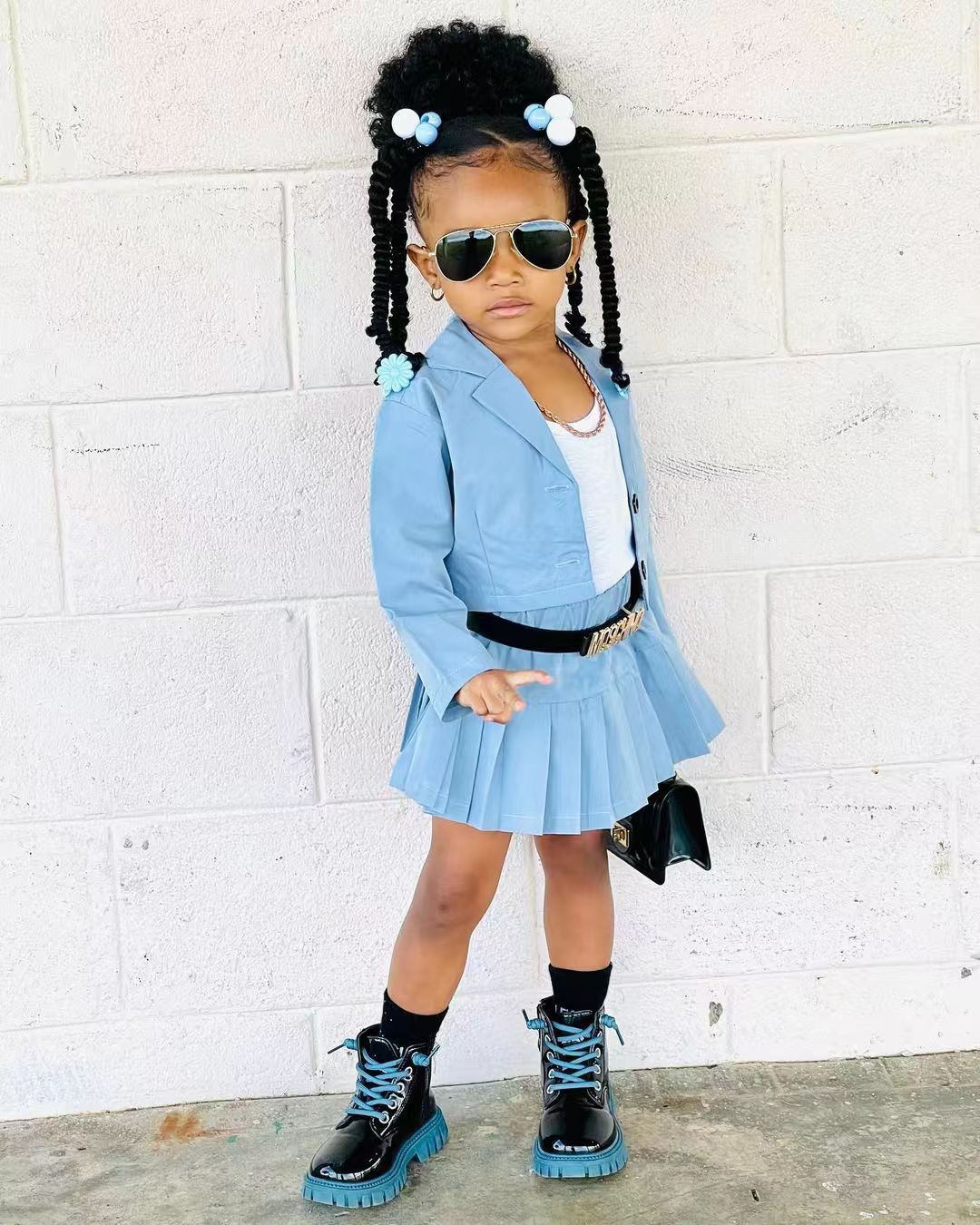 Issa Reign Check 💼👑 This power-packed two-piece set features a cropped blazer, pleated skirt, and all the boss babe energy your mini needs to shut the school hallway down. From career day to just lookin’ fly because she can — this look says stylish, confident, and always in charge. Just add shades and a side-eye.