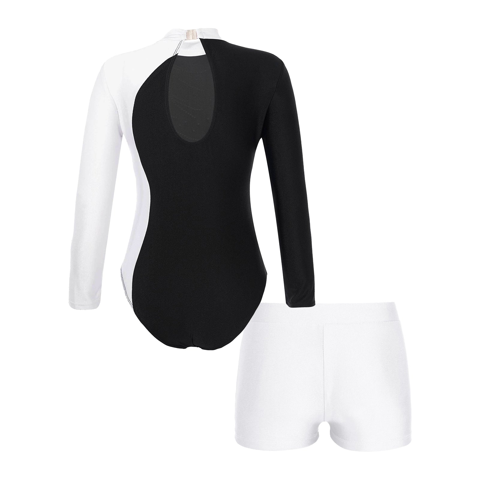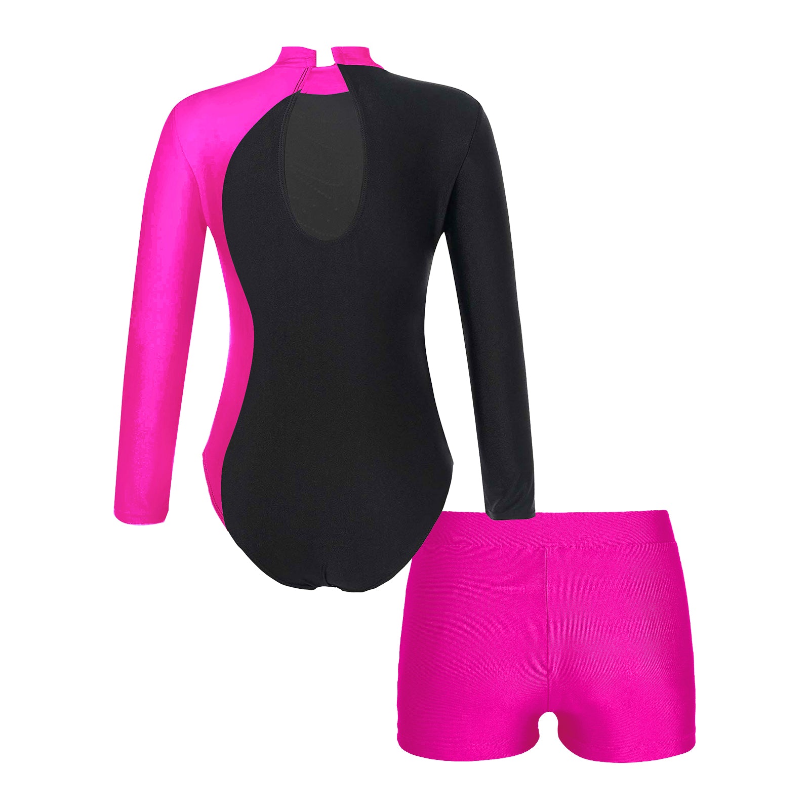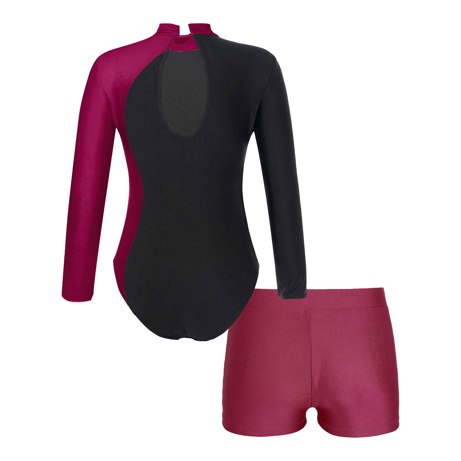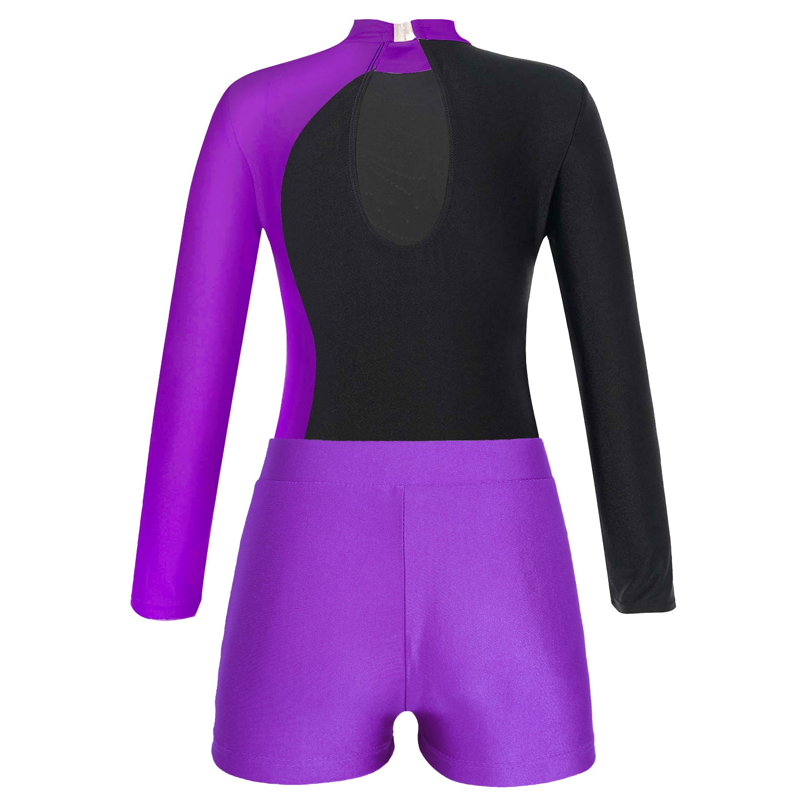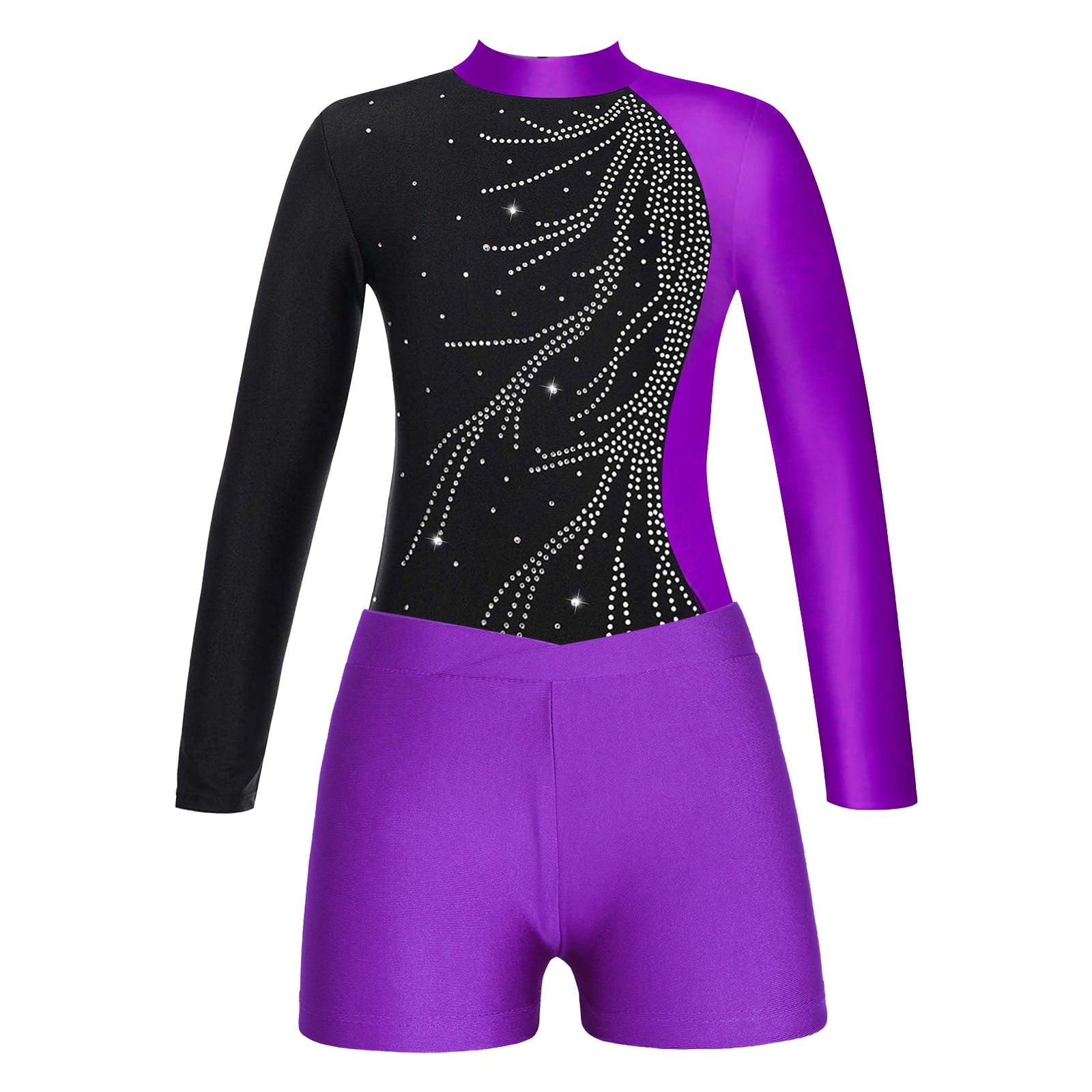 Whether she’s serving flips, kicks, or fierce poses, this sporty-chic set was made for movement and confidence. Featuring a sleek long-sleeve leotard and matching shorts in bold purple + black, it’s perfect for gymnastics, dance, cheer, or just being that girl on the playground.