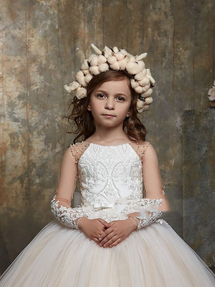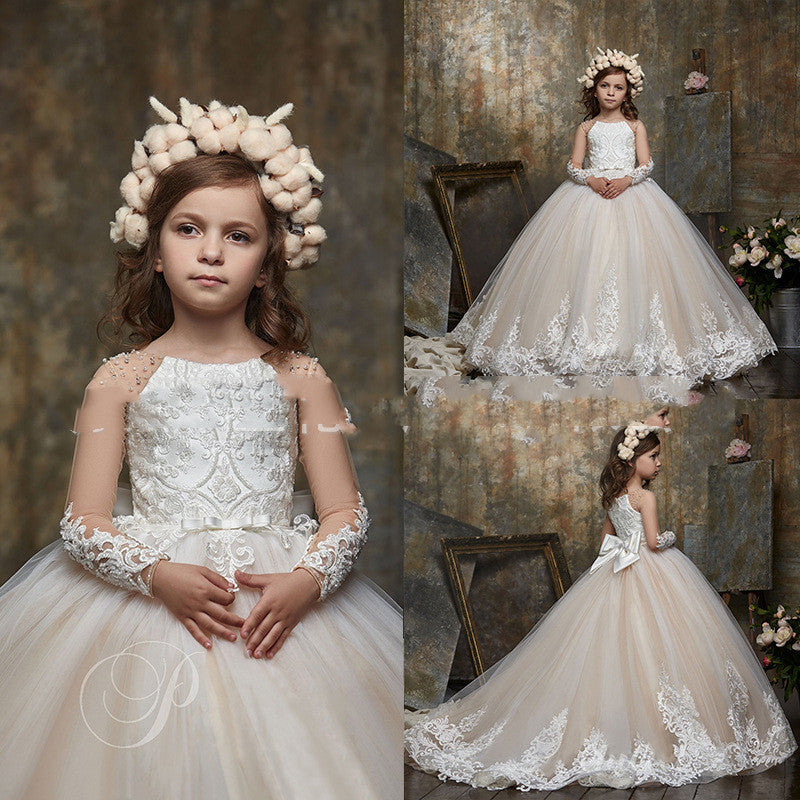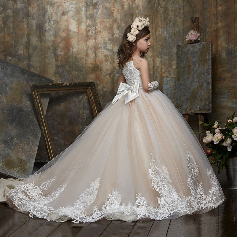 This dreamy full-length gown is giving royal realness with every step. Featuring luxe lace details, a dramatic train, and soft floral accents — your mini queen will be ready for her crown, camera, or catwalk. Perfect for pageants, birthdays, or that unforgettable entrance 💫