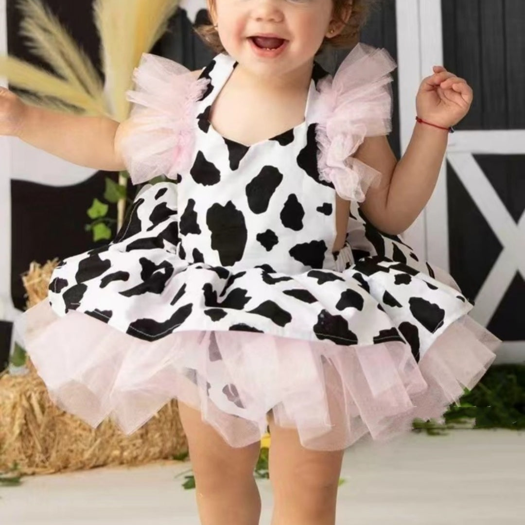 For the tiny diva who knows how to milk a moment. This playful cow-print dress features a full tutu skirt and dramatic puff sleeves for the ultimate fashion statement. It’s giving country cutie meets runway realness—perfect for birthdays, themed shoots, or just struttin’ around the house like she owns the ranch. 💅🏾