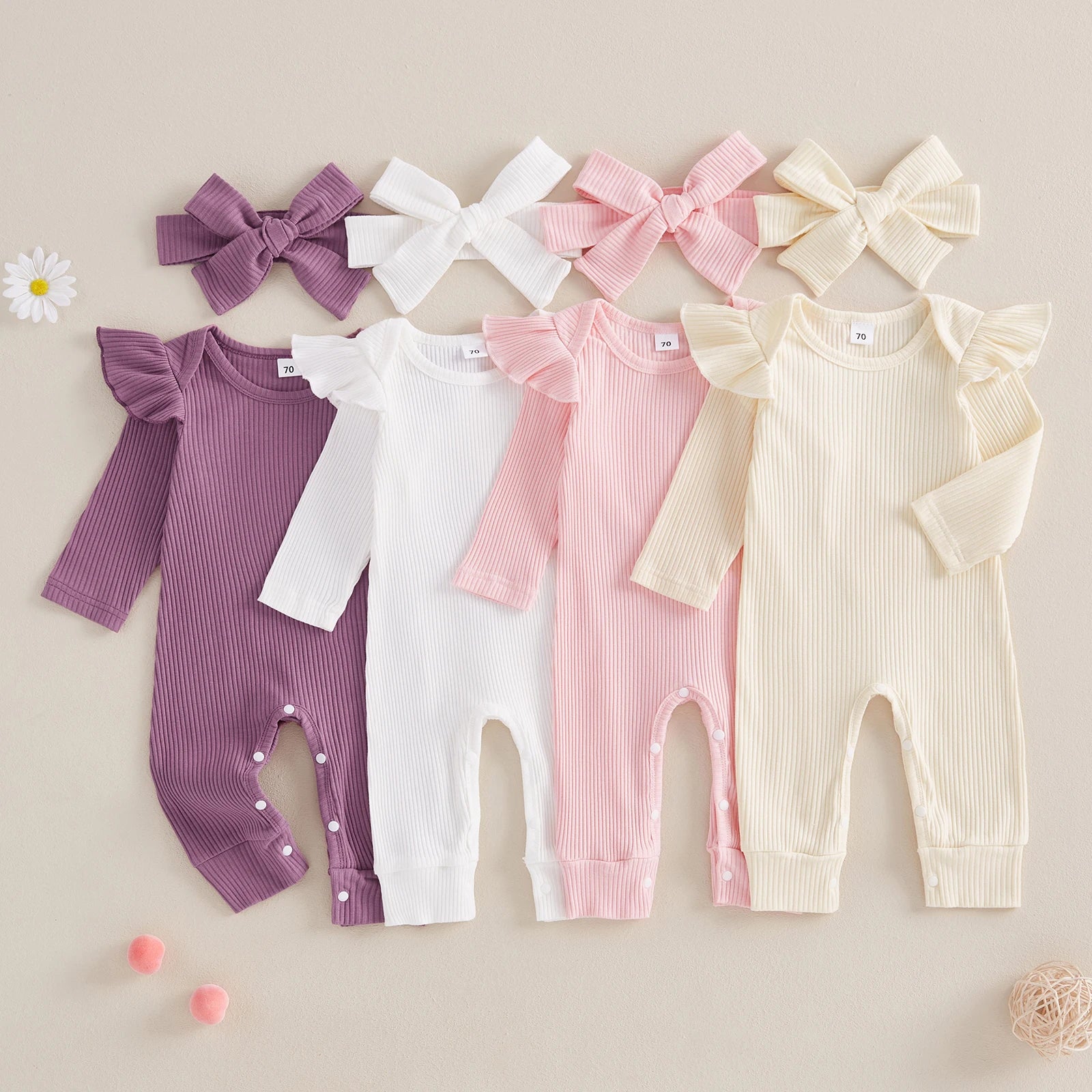 Soft, stretchy, and sassy — the Lil Luxe Lounge Set is made for cozy cuddles and photo ops. This long sleeve ribbed romper comes with a matching headwrap so your mini diva stay styled from curls to toes. From playtime to naptime, this set delivers effortless cuteness with a side of baby boss energy.