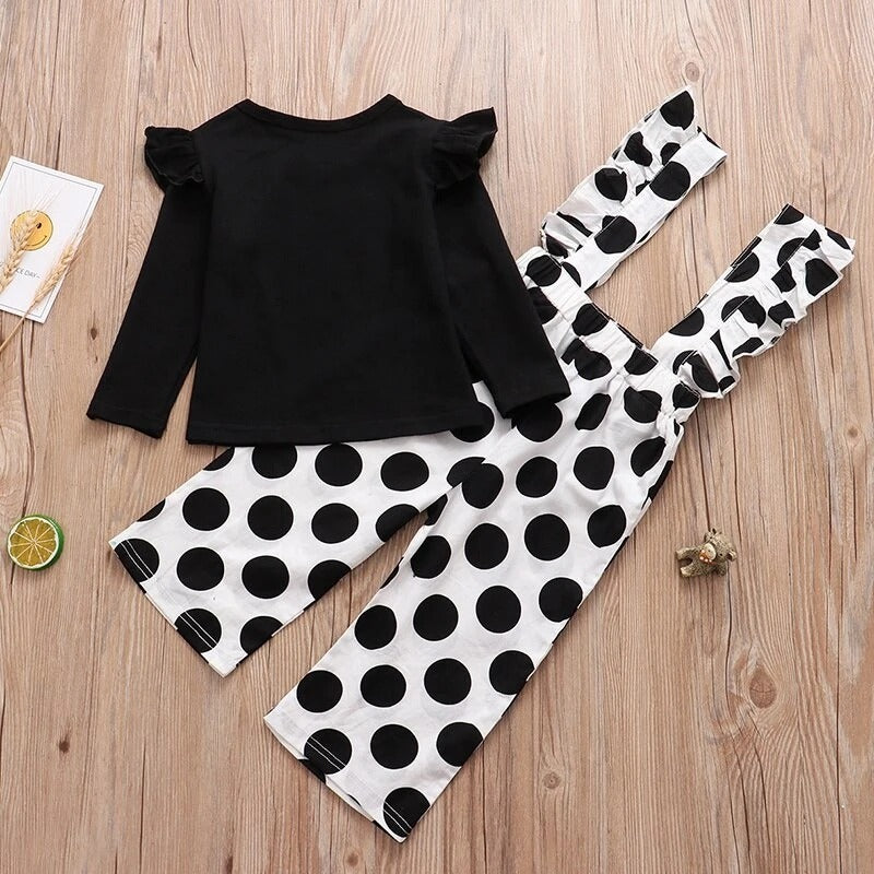 She may be tiny, but her fashion sense is loud and proud! The Dot Dot Baby set pairs a ruffled black top with eye-catching polka dot pants and matching headband. Comfy, stretchy, and made for strutting through story time or turning heads at daycare drop-off.
