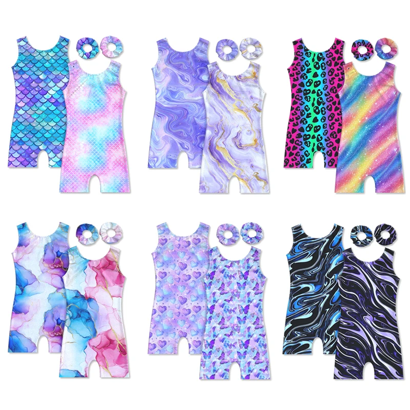 This tumbling combo includes two sleeveless gymnastics and two scrunchies,make girls to show their personal style and charm